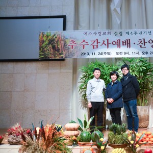 주님의 축복속에서 새성전에 입당하여 교회설립 4주년기념과 " 2013년 추수감사절" 예배를 드렸습니다. 모든 교인이 서로 축복하고 축복 받으며, …